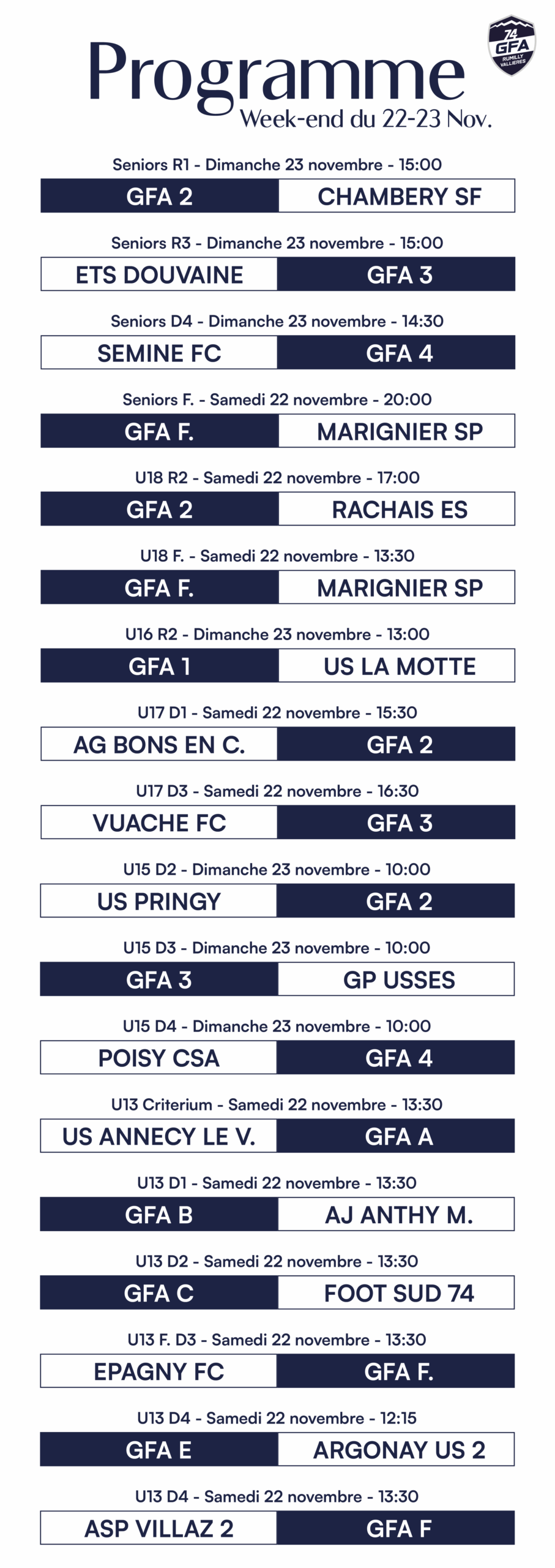 Académie – Les matchs du week-end
