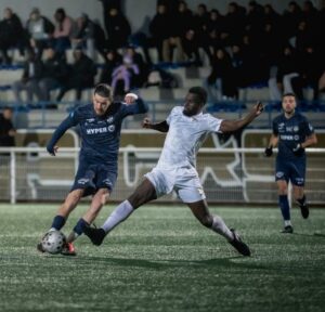 Juste avant le retour aux vestiaires, le coup-franc de Fouley était renvoyé par la barre (44e). À l’heure de jeu, la mission des bleus se compliquait encore davantage. Sur un contre, suivi d’un ballon en profondeur, l’avant-centre du FC93, Mendy, y allait de son doublé pour mettre fin au suspense (3-0, 57e). Les deux buts haut-savoyards inscrits dans le temps additionnel, d’abord par Essafiani d’une frappe en pleine lucarne à l’entrée de la surface (3-1, 90e+1) puis par Hattab de la tête (3-2, 90e+4), ne feront qu’accentuer un peu plus les regrets, d’autant que Laurent, monté aux avant-postes, avait la balle du 3-3 mais butait sur Chatelain (90e+6). Conséquence de ce troisième revers de la saison, notre équipe fanion reste deuxième du classement à un point des Lusitanos.